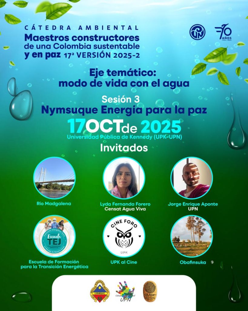 Desde la cátedra ambiental de la UPN les invitamos a la tercera sesión “Nymsuque energía para la paz” momento de conocer y reflexionar sobre las posibilidades y retos de la generación e implementación de soluciones energéticas en clave de paz y justicia social.