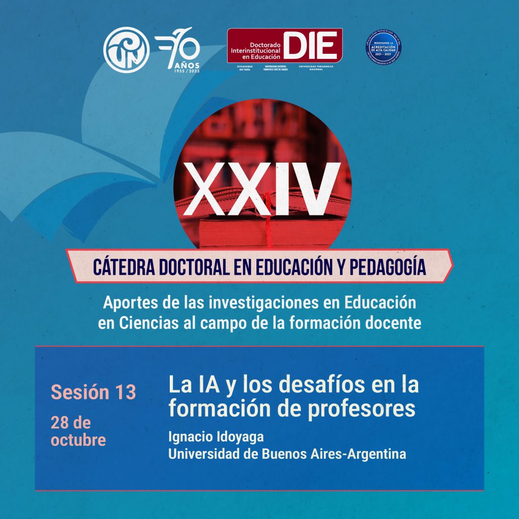 El Doctorado Interinstitucional en Educación invita a la comunidad a la sesión número trece de la Cátedra Doctoral «Aportes de las investigaciones en Educación en Ciencias al campo de la formación docente» 2025-2. Esta se titula « La IA y los desafíos en las formación de profesores » y se llevará a cabo el 28 de octubre a las 5:00 p.m.