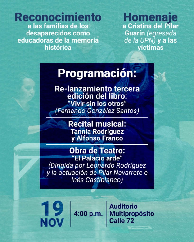 La Universidad Pedagógica Nacional llevará a cabo un evento de memoria y reflexión en reconocimiento a las familias de los desaparecidos como educadoras de la memoria histórica, así como un homenaje especial a Cristina del Pilar Guarín, egresada de la institución, y a todas las víctimas.