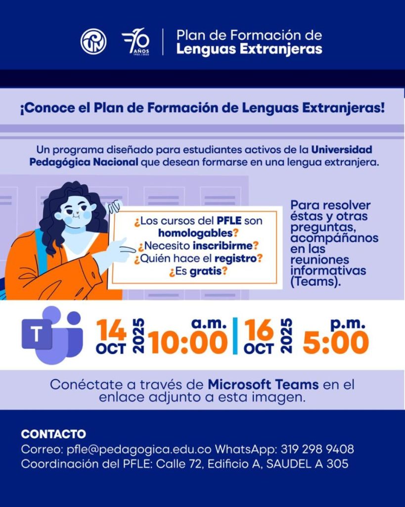 Este es un programa diseñado para estudiantes activos de la Universidad Pedagógica Nacional que desean formarse en una lengua extranjera.
