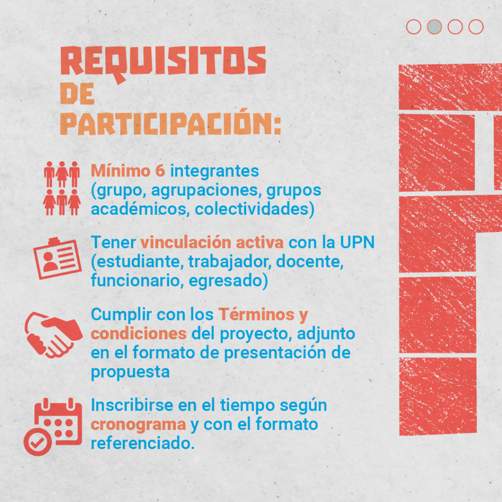 La convocatoria está dirigida a estudiantes, docentes, trabajadores, administrativos, egresados con vínculo activo, colectivos, organizaciones y grupos universitarios conformados por mínimo seis (6) integrantes de la Universidad.