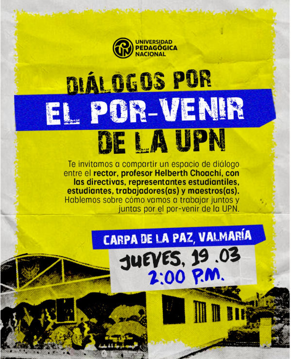 La Universidad Pedagógica Nacional invita a toda su comunidad académica a participar en “Diálogos por el por-venir de la UPN”, un espacio de conversación y construcción colectiva que busca fortalecer la participación y el trabajo conjunto alrededor del futuro de la institución.