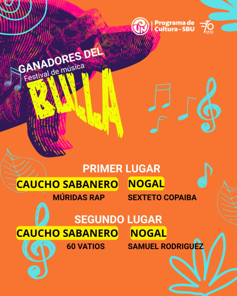 El Programa de Cultura – SBU de la Universidad Pedagógica Nacional celebra a los ganadores del Festival de Música “Bulla”, un espacio que promueve la creatividad, el talento y la diversidad musical de nuestra comunidad universitaria.