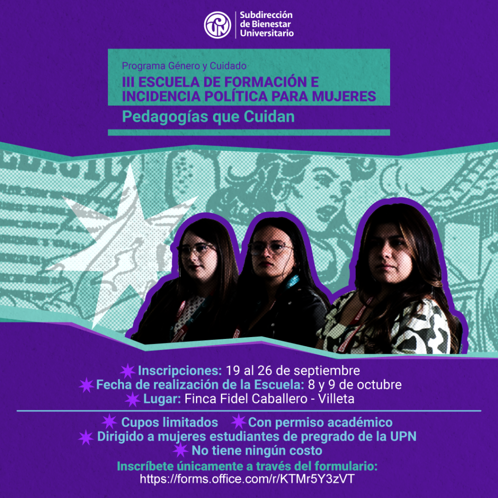 El Programa Género y Cuidado da a conocer a la comunidad universitaria la convocatoria de la III Escuela de formación e incidencia política para mujeres estudiantes de a UPN: Pedagogías que cuidan.