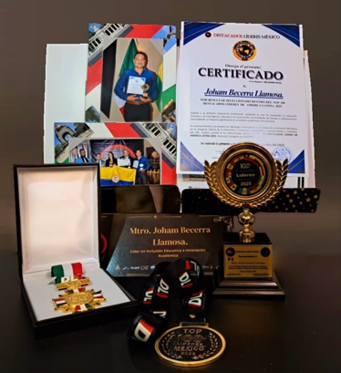 La universidad Pedagógica Nacional, desde la Facultad de Educación Física se complace en anunciar que, hace unos días en Ciudad de México, nuestro querido Maestro y Catedrático UPN Joham Becerra Llamosa, fue Premiado con el Galardón Top 100 Destacados Líderes de América Latina entre más de 26.000 aspirantes, lo que le valió también una condecoración con la Medalla del Congreso al Mérito “Líder Honorable de América”, debido a su sobresaliente trayectoria profesional en Educación, Inclusión y en Investigación.