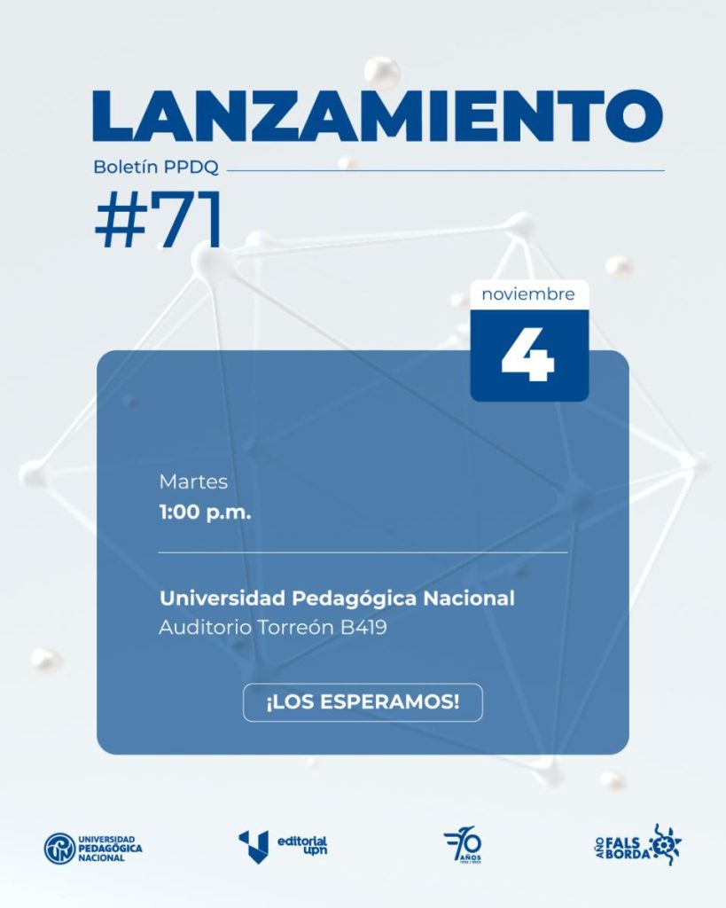 La Universidad Pedagógica Nacional invita a toda la comunidad académica al lanzamiento del Boletín PPDQ número 71.