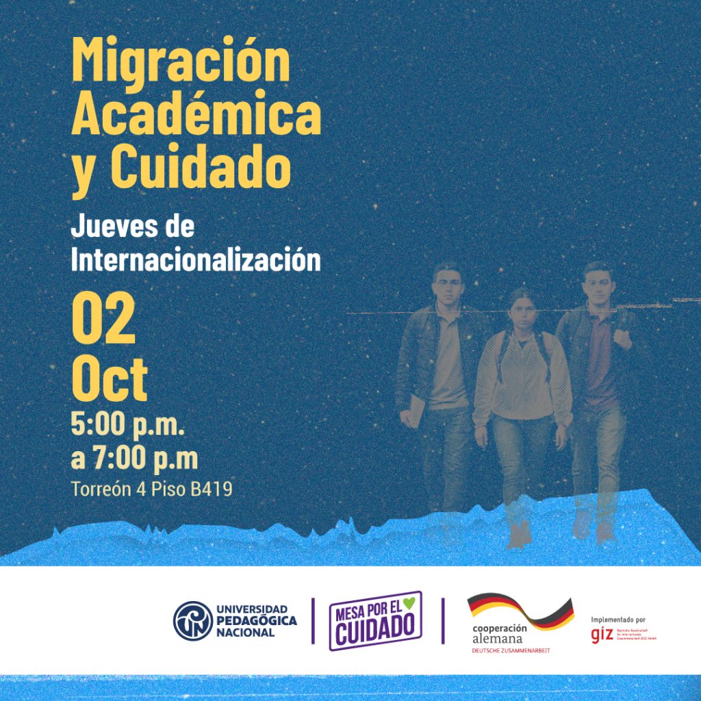 La Universidad Pedagógica Nacional invita a la comunidad al espacio Migración Académica y Cuidado en el marco de los jueves de Internacionalización. La cita es el 2 de octubre de 5:00 p.m. a 7:00 p.m. en el Torreón 4 piso B 419.