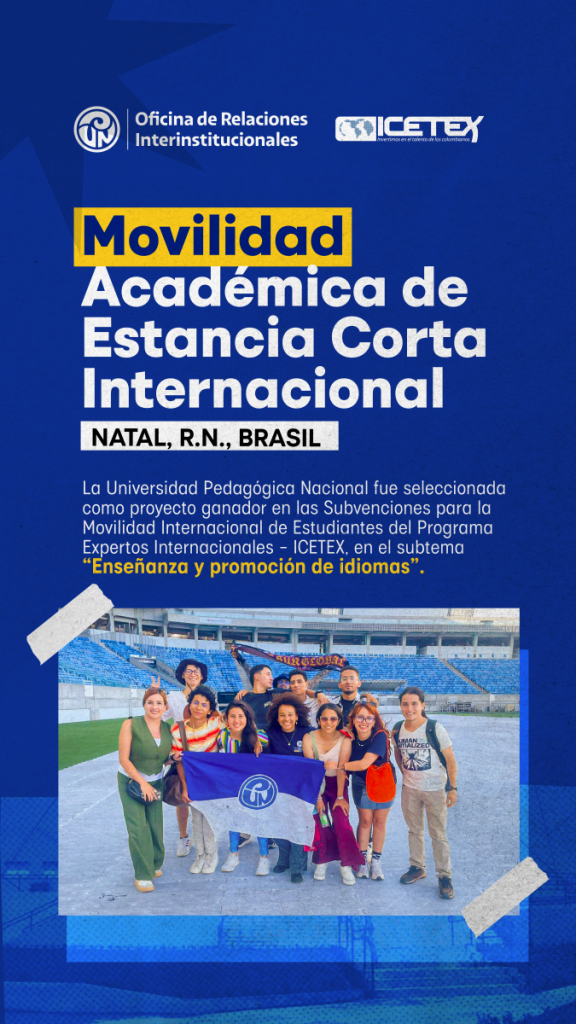 La Universidad Pedagógica Nacional fue seleccionada como proyecto ganador en las Subvenciones para la movilidad internacional de estudiantes, del Programa Expertos Internacionales de ICETEX, en el subtema “Enseñanza y promoción de idiomas”. En el marco de esta iniciativa, doce estudiantes de la UPN y una funcionaria de la ORI realizaron una estancia corta en el Instituto Federal de Educação, Ciência e Tecnologia do Rio Grande do Norte (IFRN), en Brasil.
