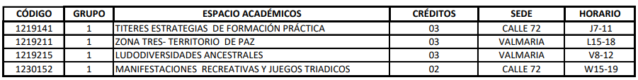 Oferta de electivas todo programa de la Licenciatura en Recreación