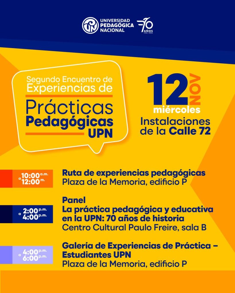 La Universidad Pedagógica Nacional te invita a participar del Segundo Encuentro de Experiencias de Prácticas Pedagógicas – UPN el miércoles 12 de noviembre.